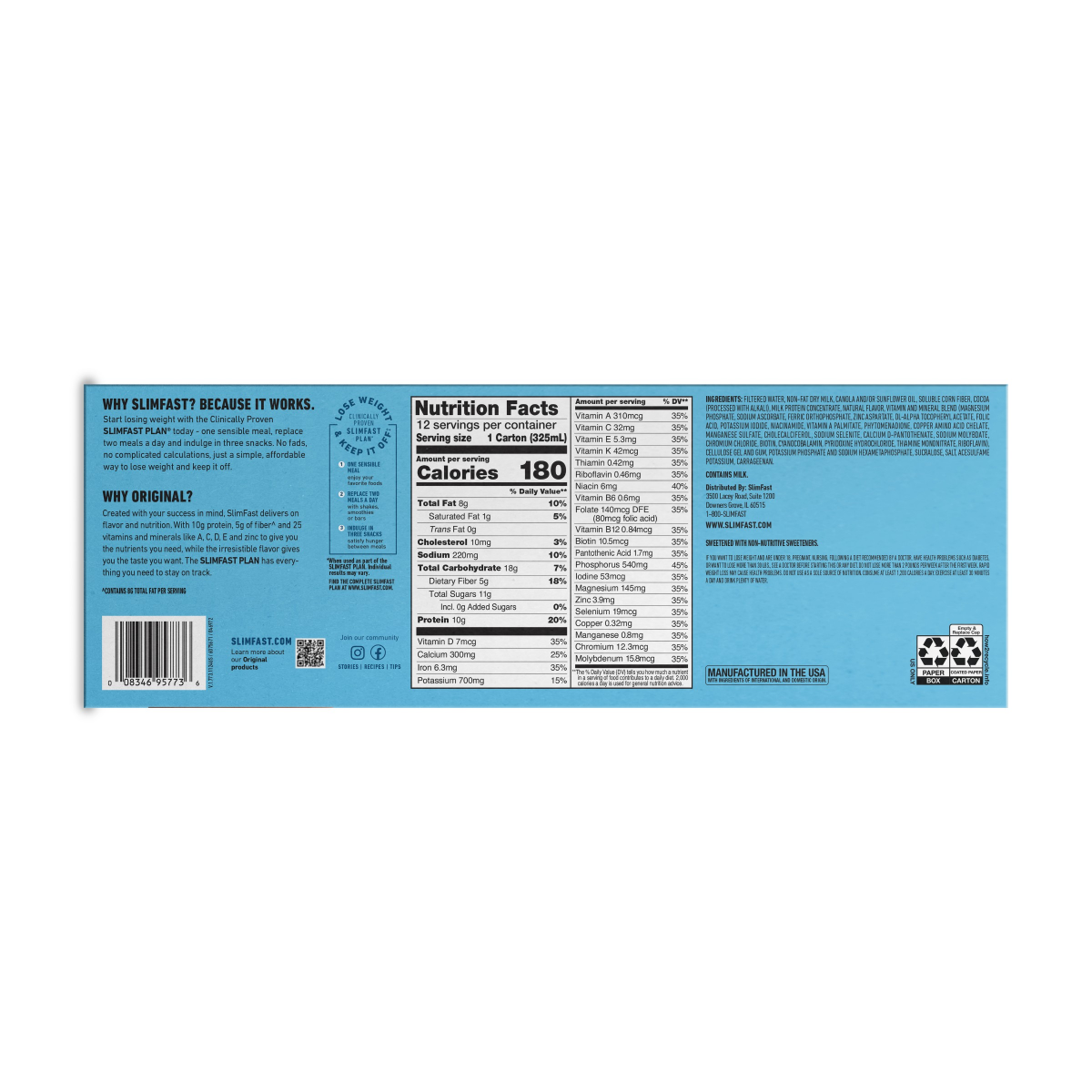 SlimFast SlimFast Original Meal Replacement Shake, Creamy Milk Chocolate, 11oz, 12ct