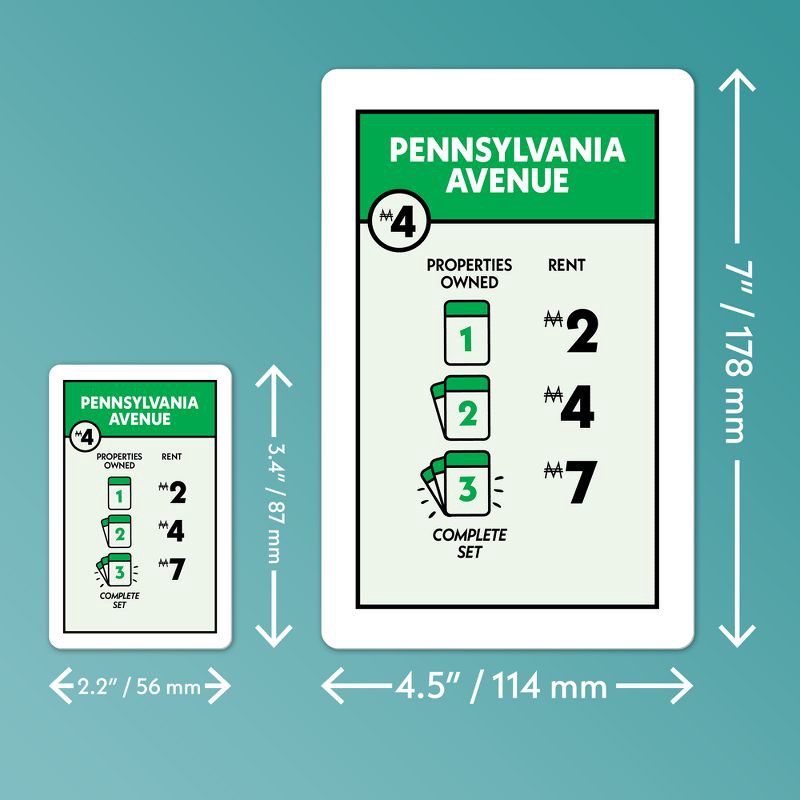 - CARDS 4 TIMES LARGER THAN IN ORIGINAL GAME: These jumbo cards are 4 times the size of the original Monopoly Deal cards, adding a big surprise to game nights and parties