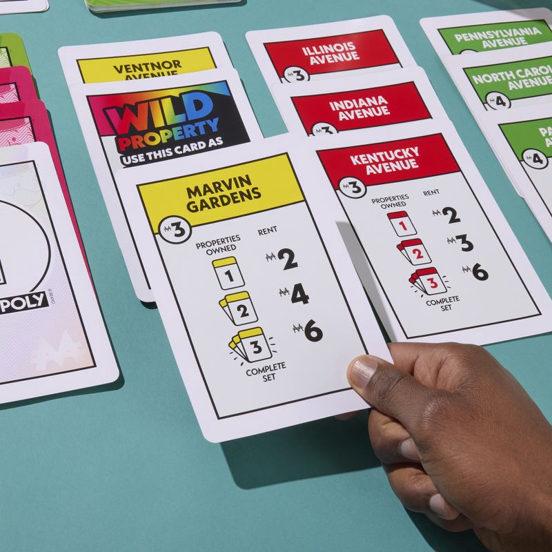 - SAME MONOPOLY DEAL GAMEPLAY FANS LOVE: Swap, steal, and scheme! Collect 3 property sets to win. Use Action Cards to collect rent, steal and swap properties, or get paid by opponents when “It's Your Birthday!”