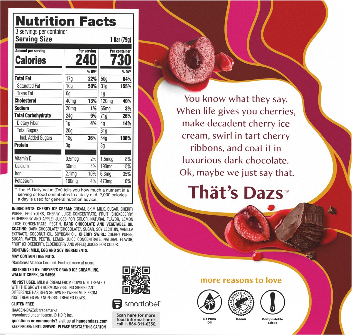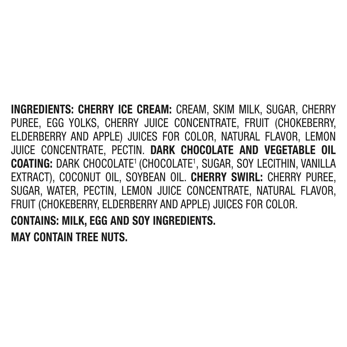 Cherry Ice Cream: Cream, Skim Milk, Sugar, Cherry Puree, Egg Yolks, Cherry Juice Concentrate, Fruit (Chokeberry, Elderberry and Apple) Juices for Color, Natural Flavor, Lemon Juice Concentrate, Pectin…