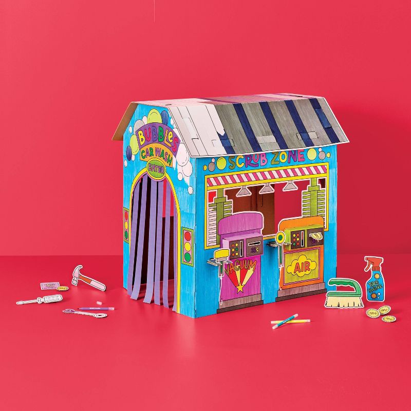 Color-Your-Own Car Wash Garage Fort - Mondo Llama™