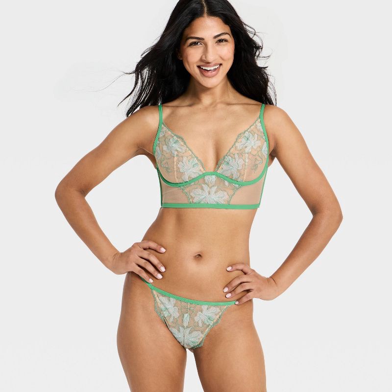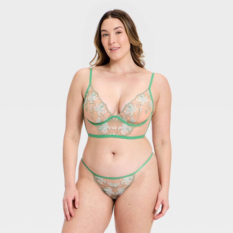 Women's Embroidery Lace Lingerie Corset & Thong Set - Auden™ Green XS