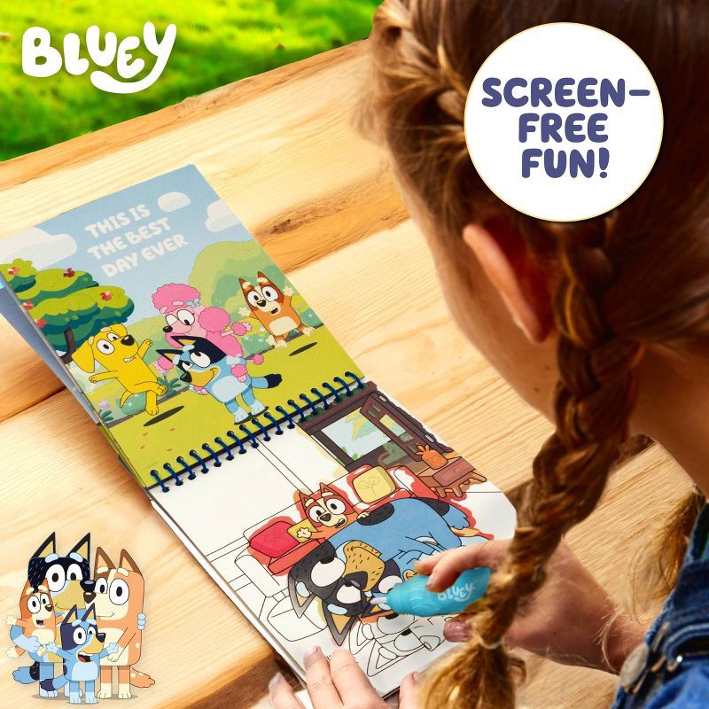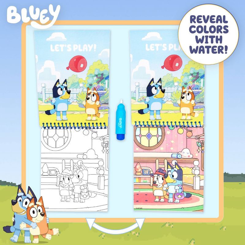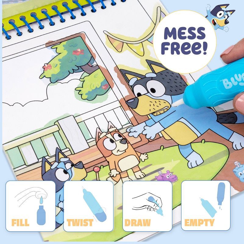 - MESS-FREE BLUEY WATER ART: Just add water to the refillable brush and reveal hidden scenes from the show inside this spiral-bound water-reveal activity pad — no paints, no markers, no mess!