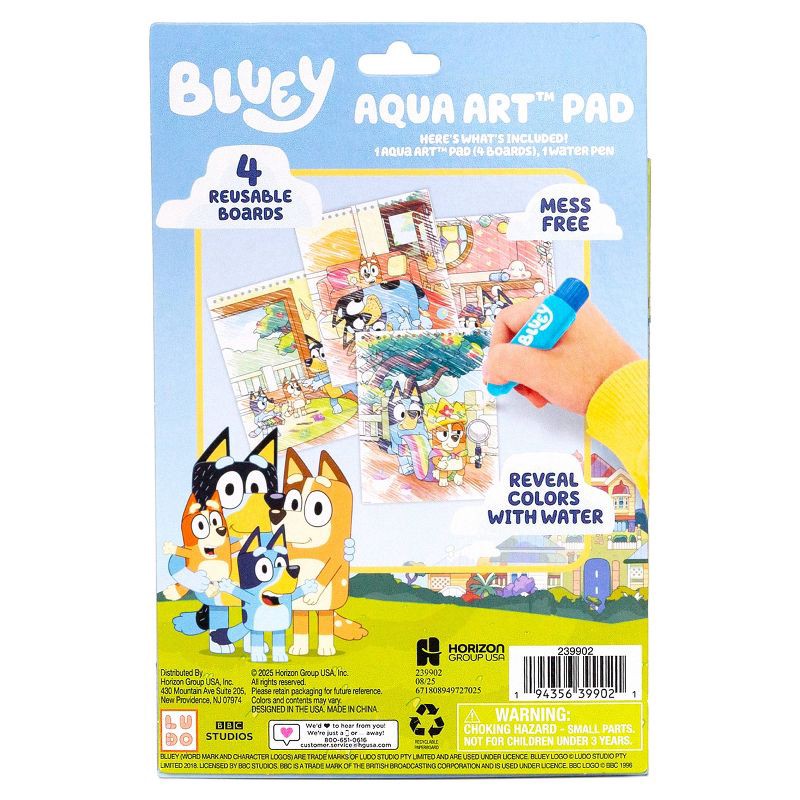- SET INCLUDES: 1 Aqua Art Pad (6 in. x 7.5 in. – 4 Pages), 1 Aqua Art Pen — a fun Bluey gift for kids ages 3+.