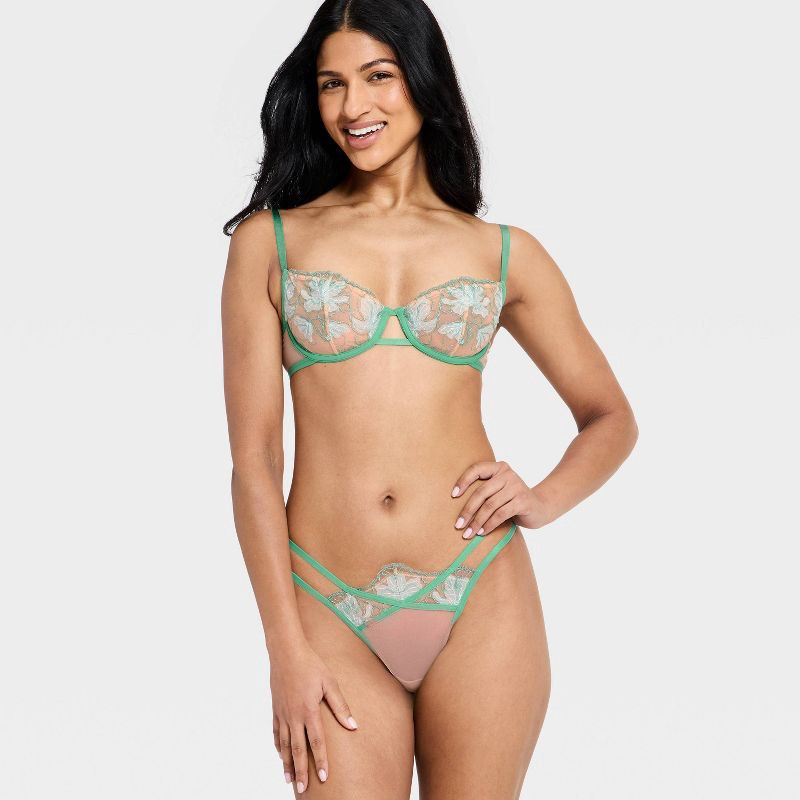 Embrace delicate sophistication with this Embroidery Lace Lingerie Bra & Panty Set from Auden™. Crafted from 100% polyester, this coordinating bra and panty features green embroidery lace fabric with …