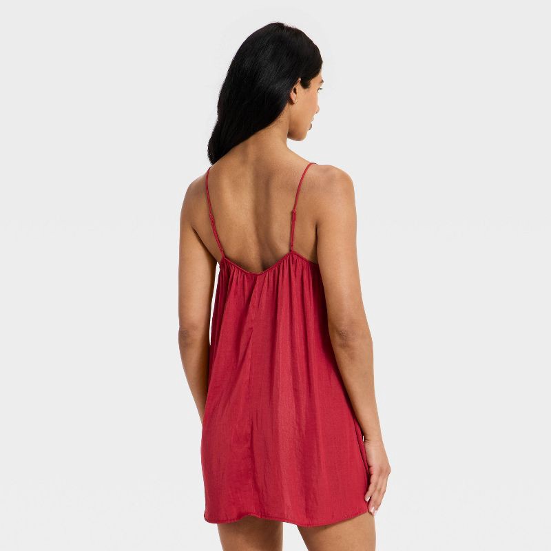 Women's Luxury Collection Lace Trim Satin Chemise - Auden™ Dark Pink L