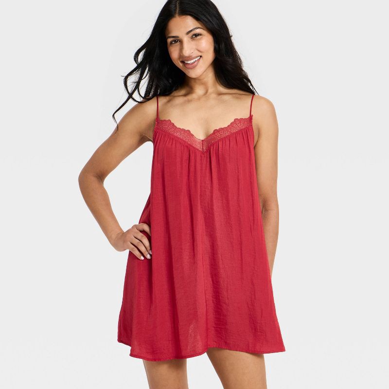 Unwind after a long day in chic style with this Luxury Collection Lace Trim Satin Chemise from Auden™. Made from recycled polyester satin fabric, this sleeveless chemise offers a regular fit with a br…