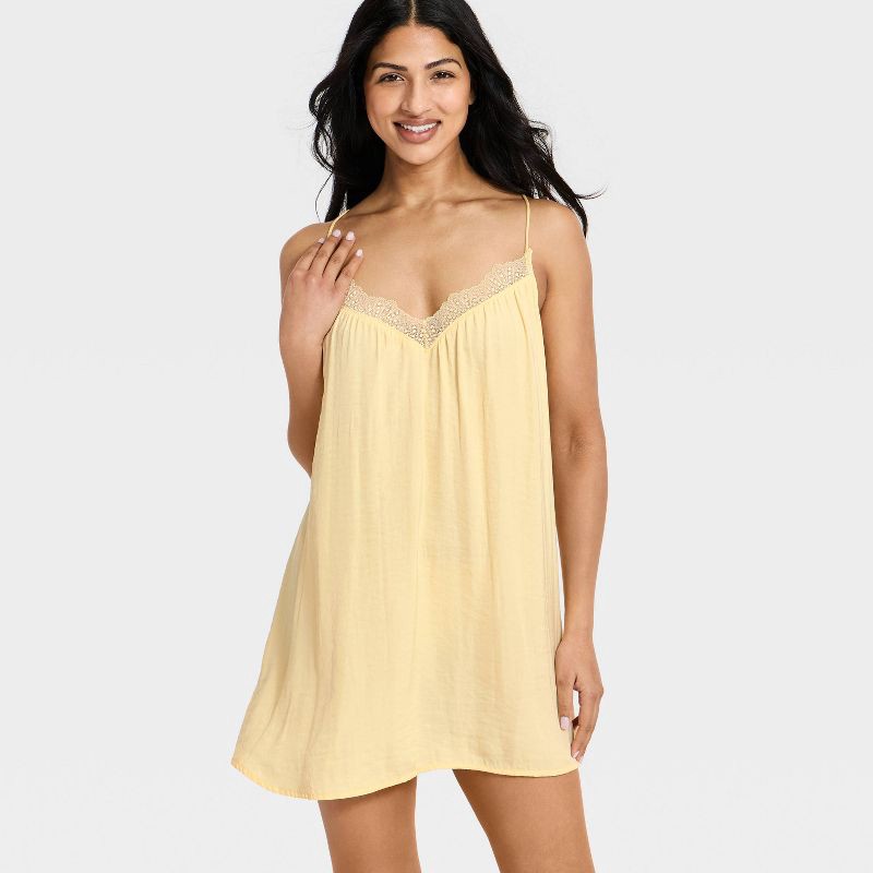 Women's Luxury Collection Lace Trim Satin Chemise - Auden™ Yellow M
