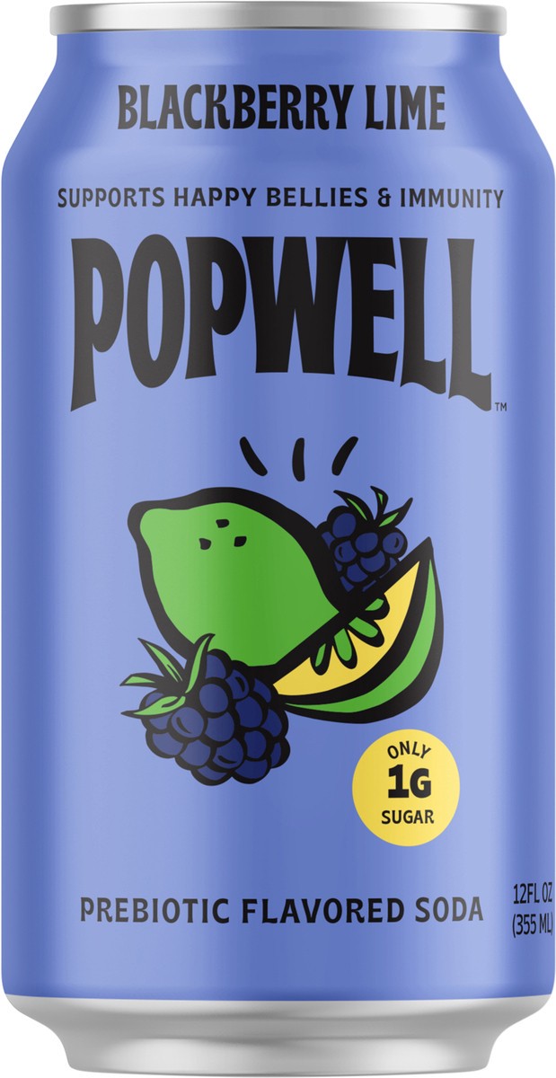 Popwell Blackberry Lime Prebiotic Soda 12 fl oz