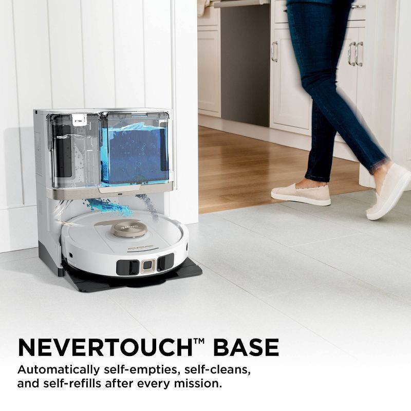 - NeverTouch™ Base automatically cleans, empties, refills, & washes the mop.