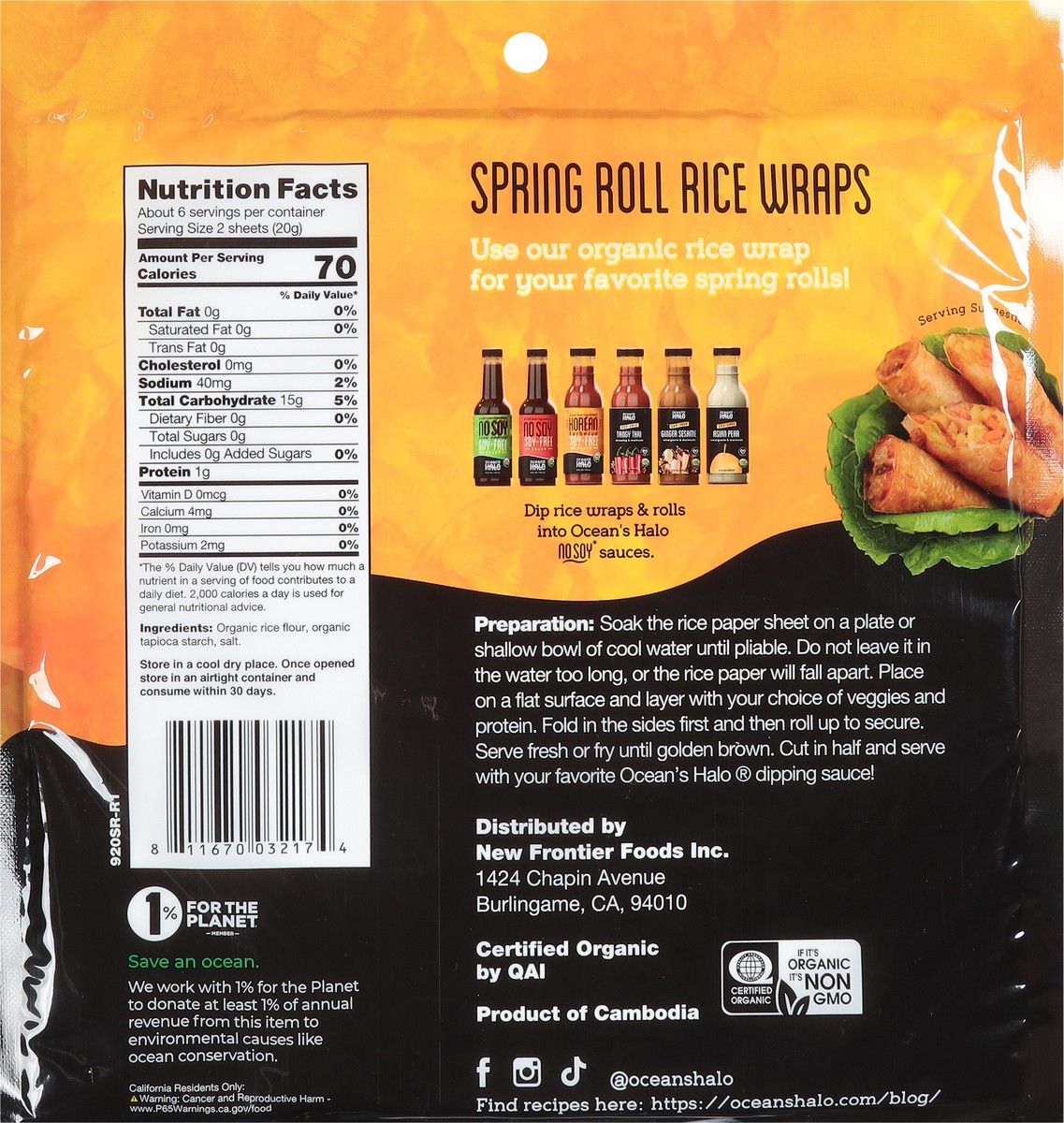 Ocean's Halo Organic Spring Roll Rice Wraps, 12 ea