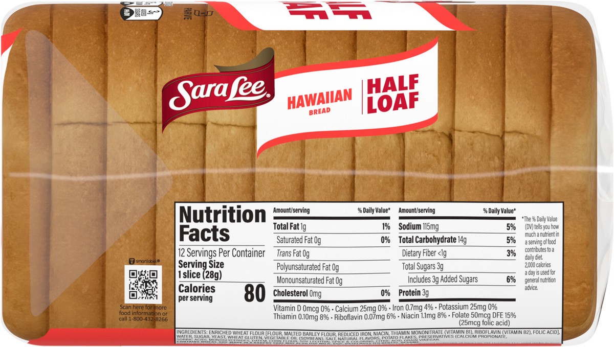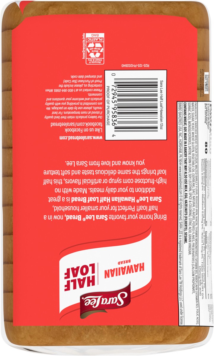 Sara Lee Hawaiian Bread, Half Loaf, 12 oz, Sweet Bread, Bag