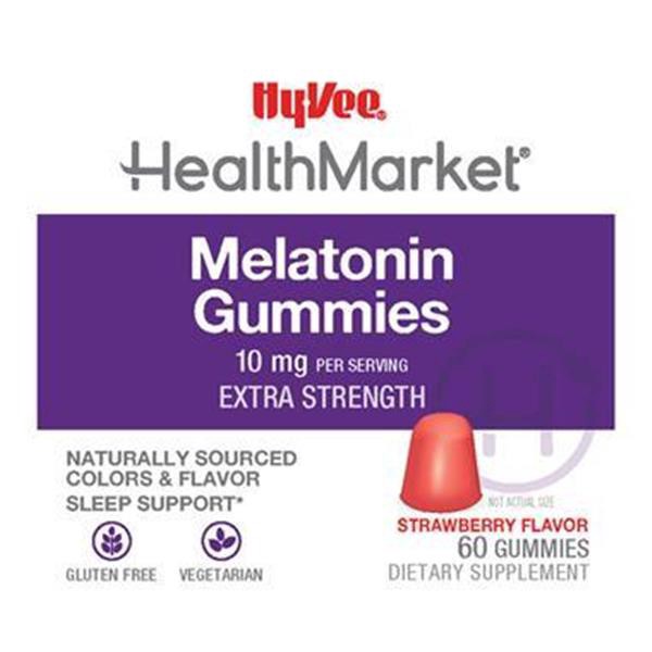 Hy-Vee Healthmarket 10 Mg Extra Strength Strawberry Flavor Melatonin 60 Gummies