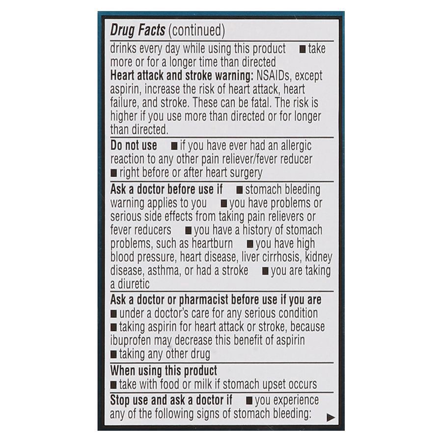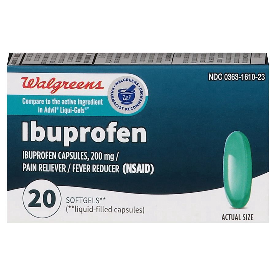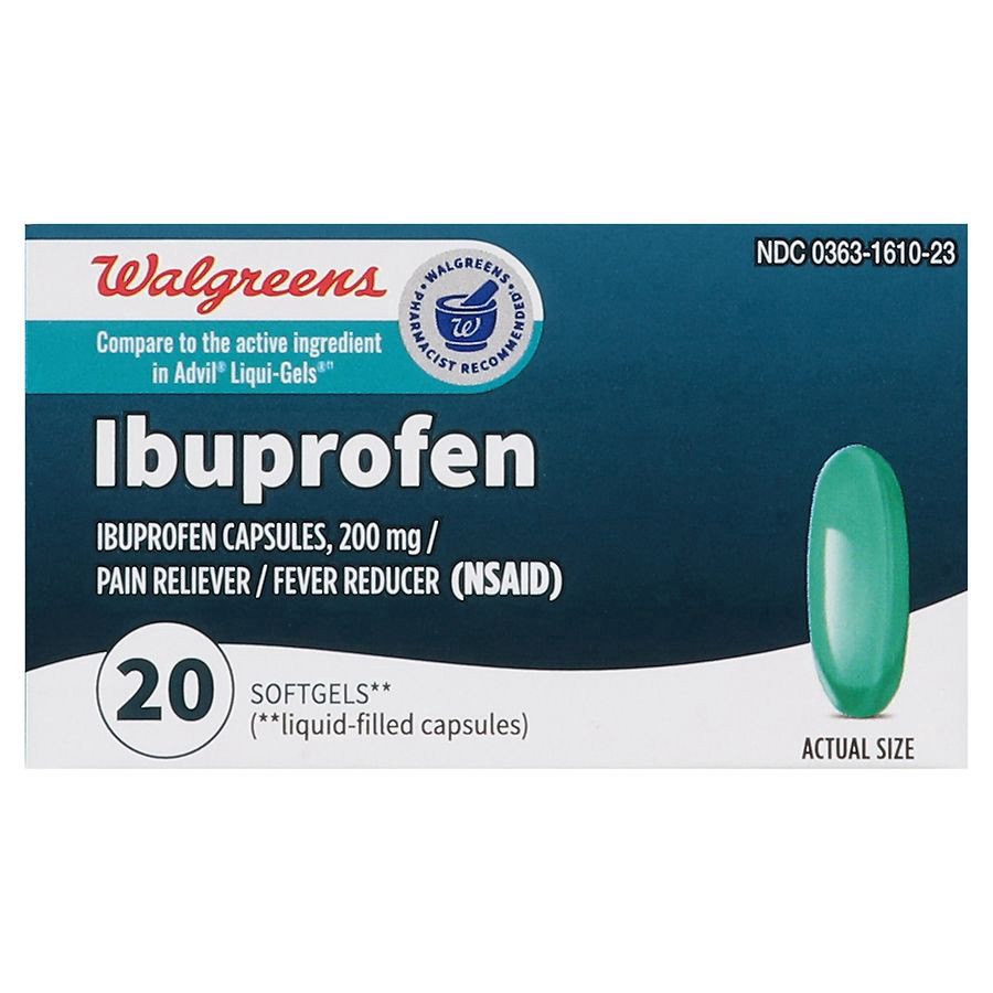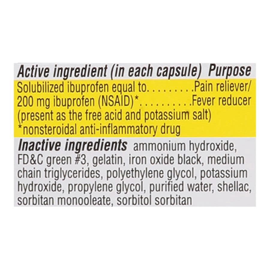Purpose Pain RelieverFever Reducer, Nonsteroidal Antiinflammatory Drug. Ibuprofen capsules, 200 mgpain relieverfever reducer NSAID. Softgels. Each Capsule Contains Potassium 20 mg. Compare to Advil Li…
