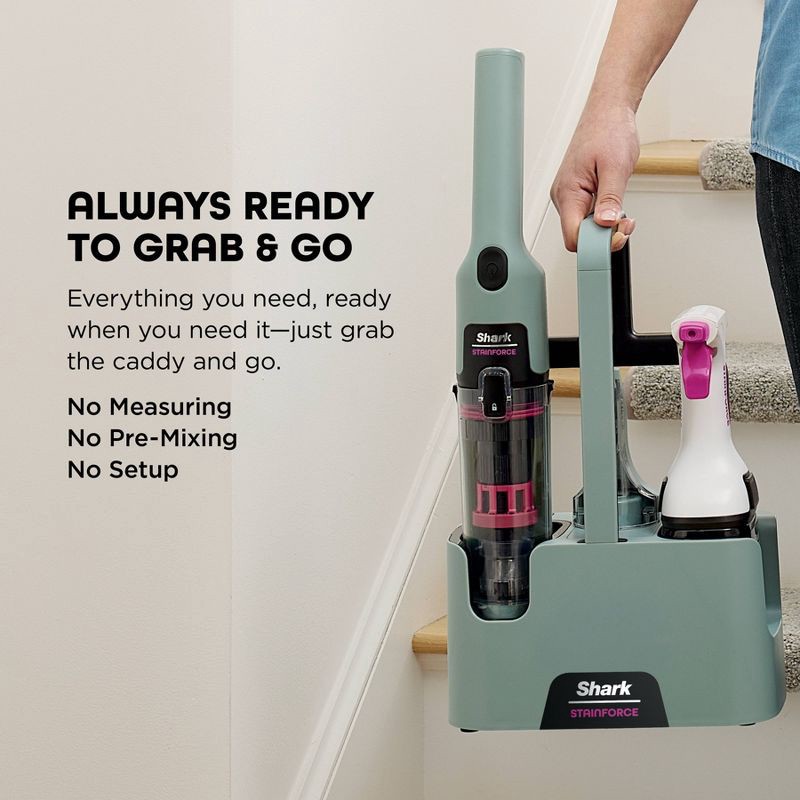 - WHAT'S INCLUDED: StainForce, Stain Eliminator Tool with reversible bristles, Crevice Tool, Grab & Go Caddy, Full-Size StainForce Dual-Activated Solution, Reusable Spray Bottle Head, Charging Cable