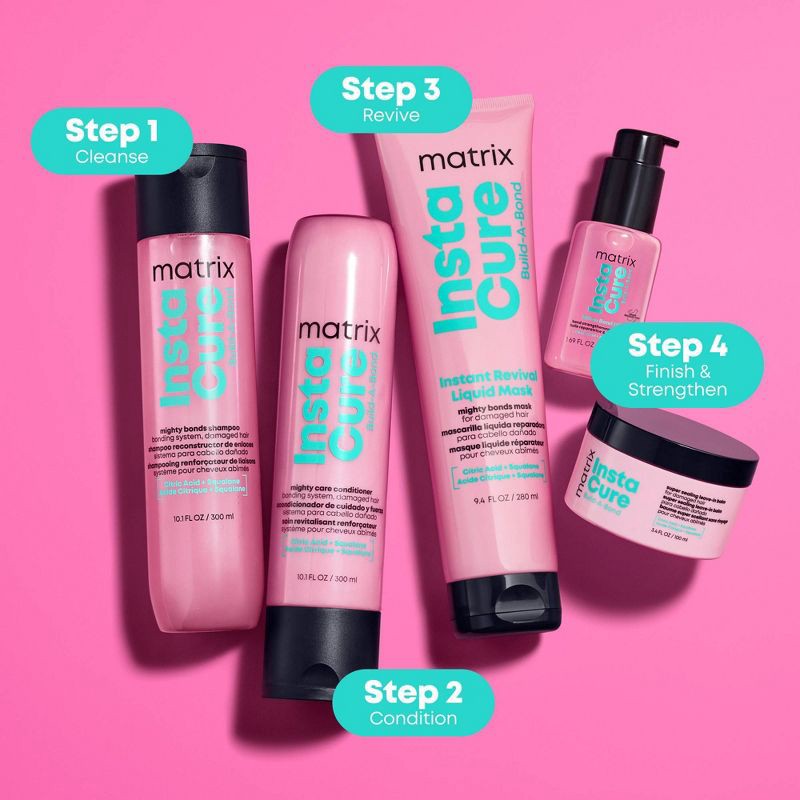 Matrix Instacure Build-A-Bond Billion Bond Oil actively repairs mega damaged hair with a professional bonding formula infused with Citric Acid and Amino Acids. This vegan, leave-in oil offers heat pro…
