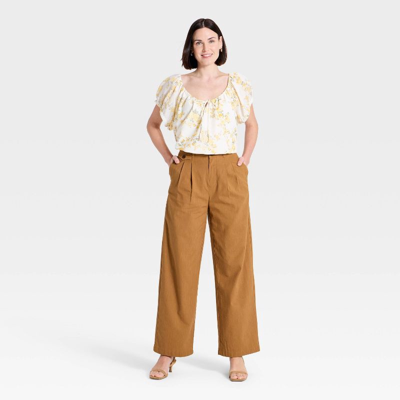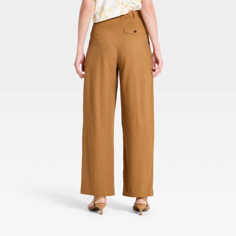 Women's Linen Trouser Pants - A New Day™ Tan S