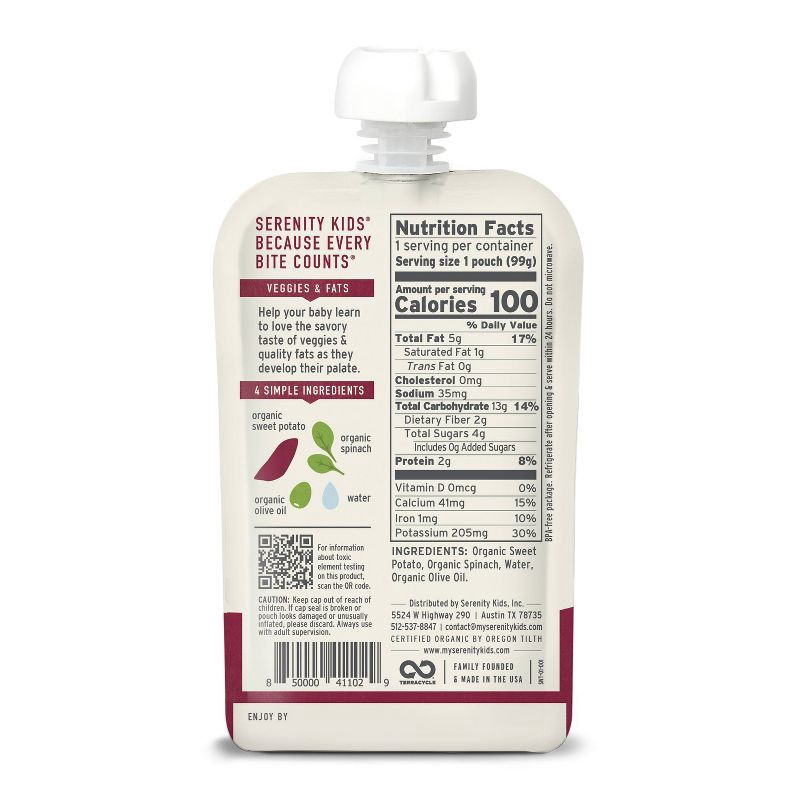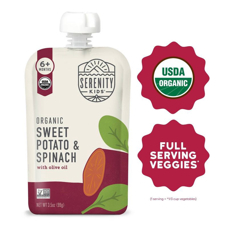 Serenity Kids Organic Sweet Potato and Spinach with Organic Olive Oil Baby Food Pouch - 3.5oz
