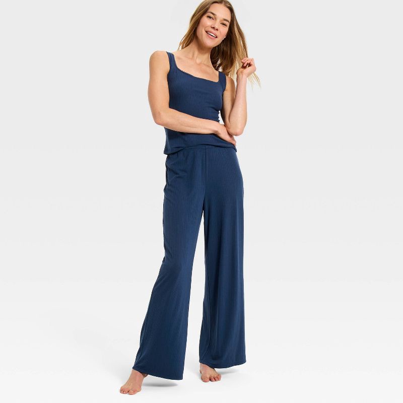 Women's Ribbed Cooling Jersey Pajama Pants - Auden™ Navy L