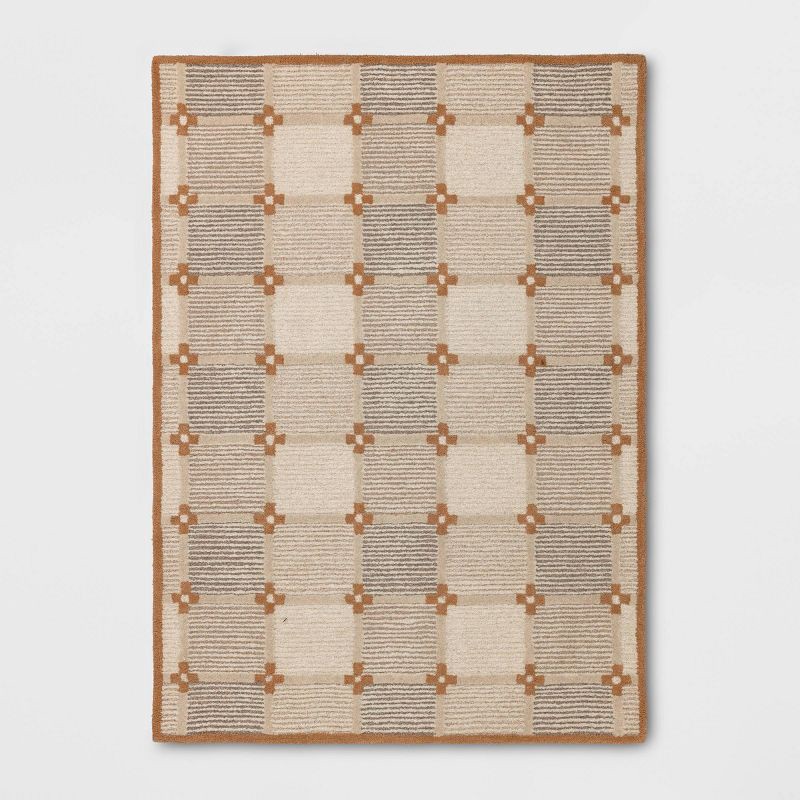 Add lovely style to any room in your home with this Wool Handtufted Area Rug from Threshold™. This rectangular hand-tufted area rug showcases a floral pattern in tan on a checkered backdrop for a char…