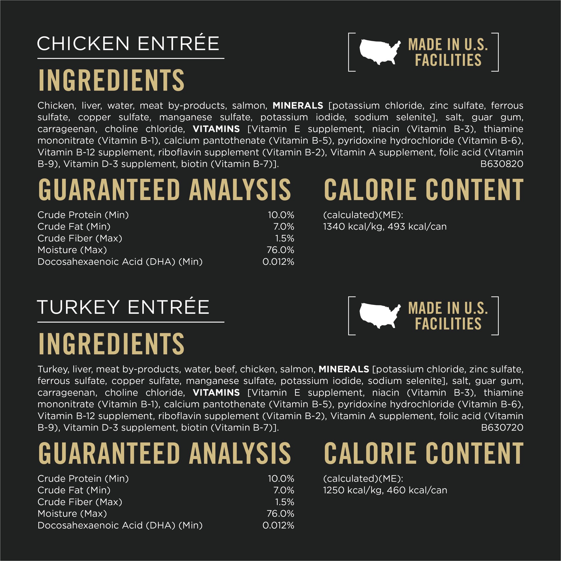 Turkey Entrée Classic: Turkey, Liver, Meat By-Products, Water, Beef, Chicken, Salmon, MINERALS [Potassium Chloride, Zinc Sulfate, Ferrous Sulfate, Copper Sulfate, Manganese Sulfate, Potassium Iodide, …
