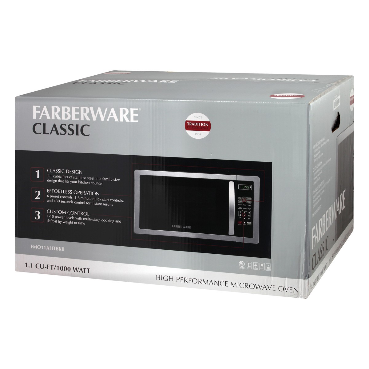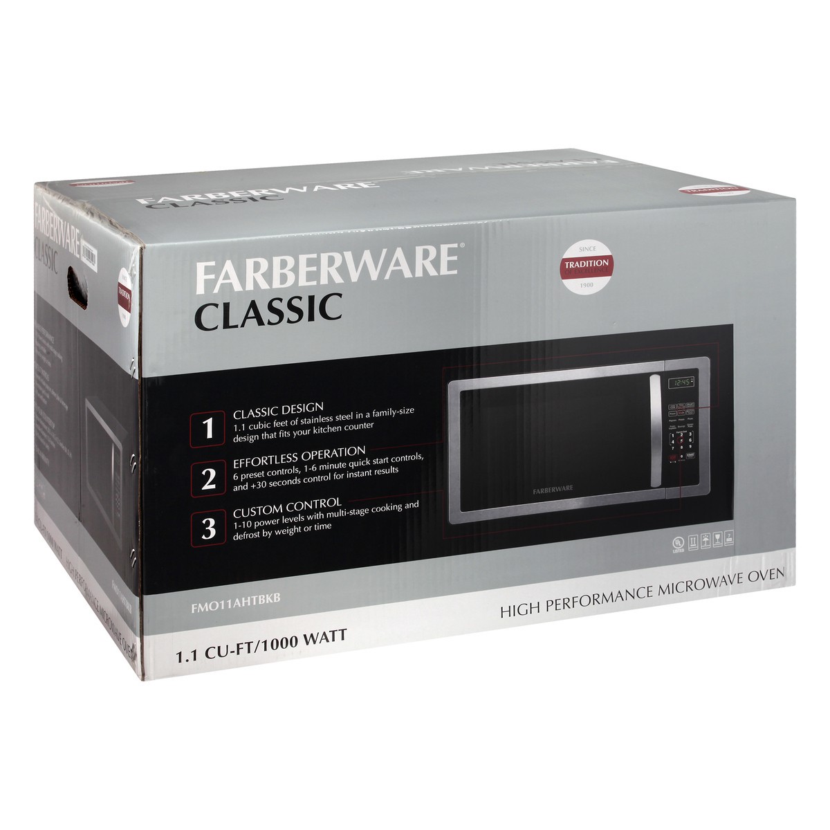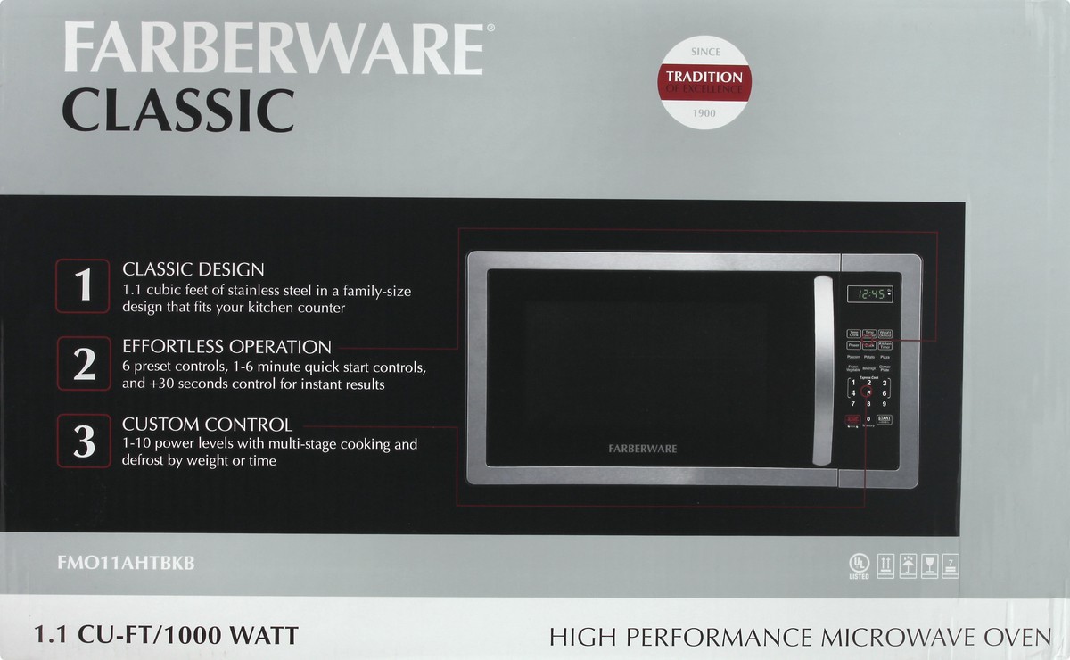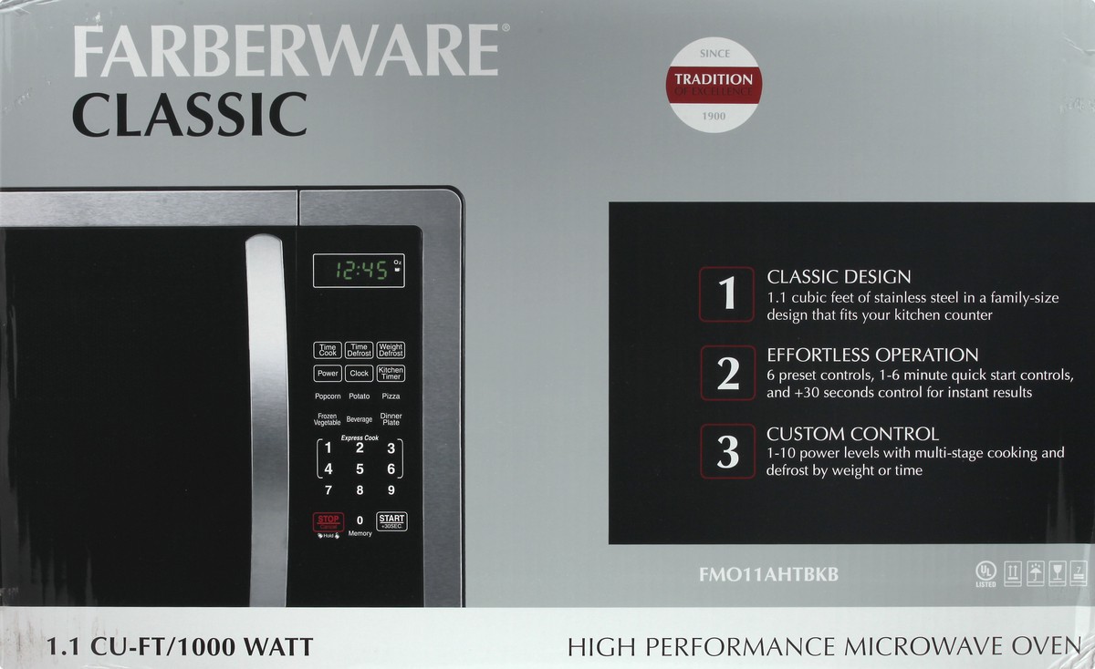 1.1 cu-ft/1000 watt. 1. Classic Design: 1.1 cubic feet of stainless in a family-size design that fits your kitchen counter. 2. Effortless operation: 6 preset controls, 1-6 minute quick start controls,…