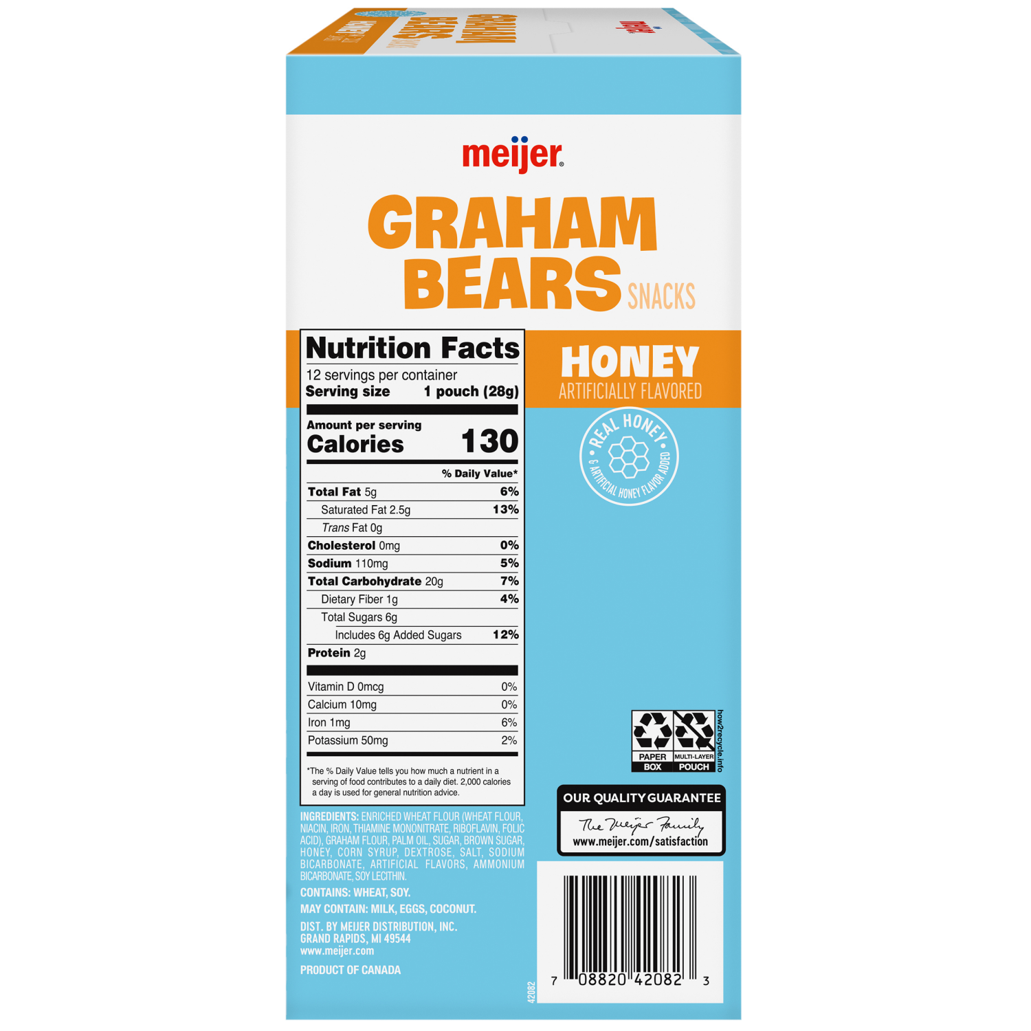 Enjoy the sweet taste of these artificially honey-flavored graham bear snacks. Conveniently packed in 12 individual 1 oz pouches, they are perfect for on-the-go snacking or sharing with friends.
