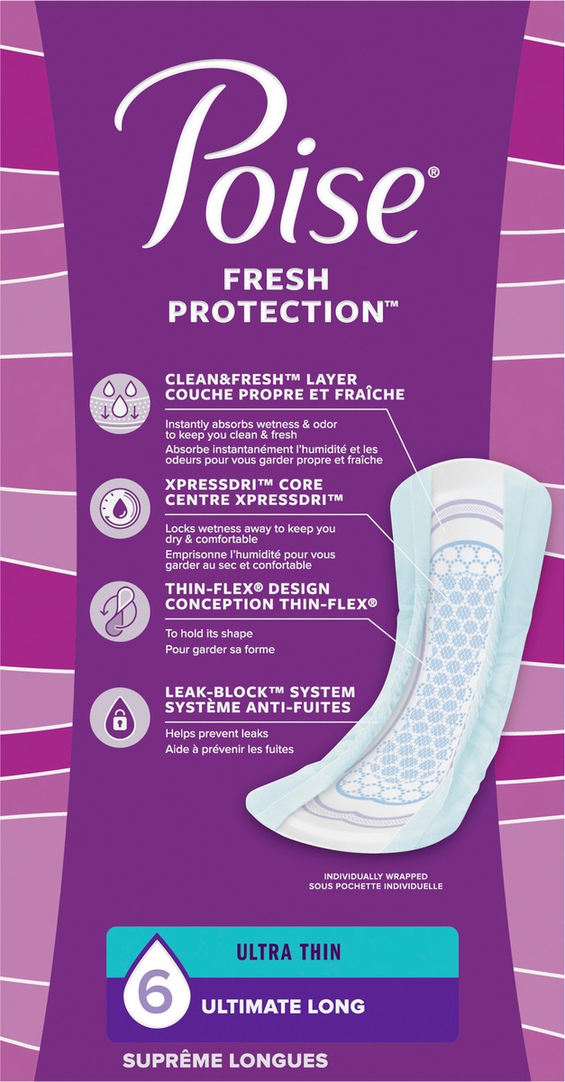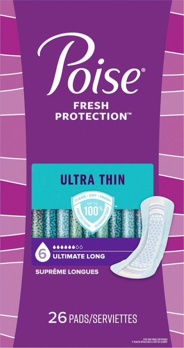 Poise Ultra Thin Incontinence Pads & Postpartum Pads for Bladder Leaks, 6 Drop Ultimate Absorbency, Long Length, 26 Count
