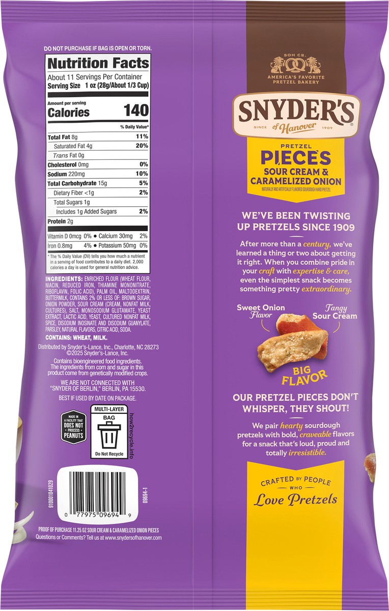 Bite into craveable flavor and hearty crunch with Snyder's of Hanover Sour Cream & Caramelized Onion Flavored Pretzel Pieces! Bursting with big flavor, these crunchy sourdough pretzels are generously …