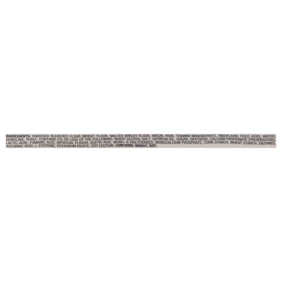 Enriched Bleached Flour (Wheat Flour, Malted Barley Flour, Niacin, Iron, Thiamin Mononitrate, Riboflavin, Folic Acid), Water, Semolina, Yeast, Contains 2% or Less of the Following: Wheat Gluten, Salt,…