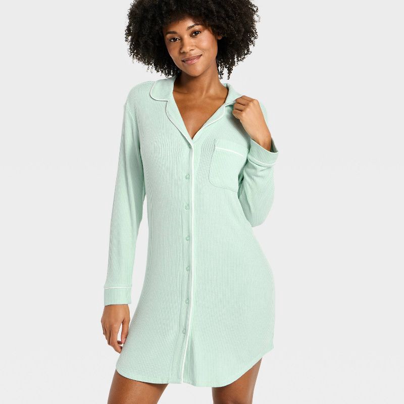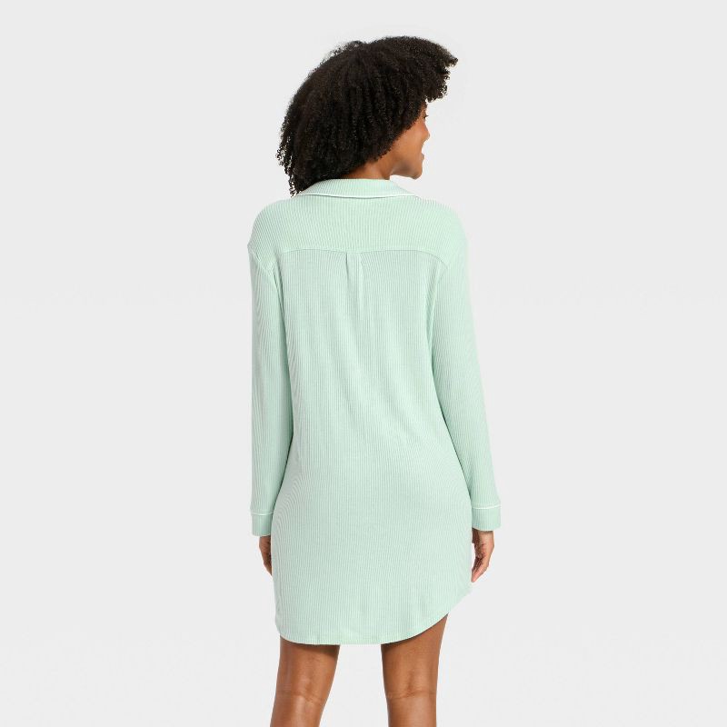Women's Cozy Ribbed Notch Collar Pajama Gown - Auden™ Mint L