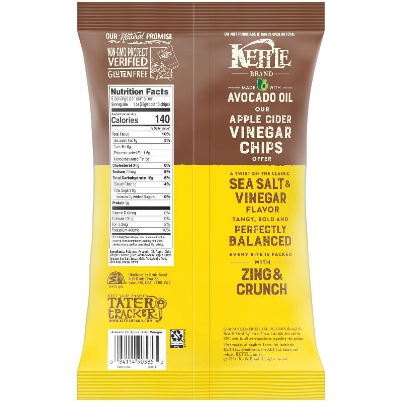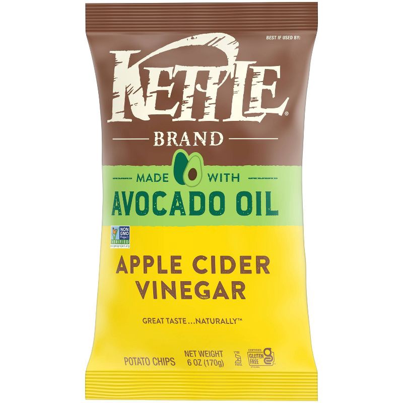 - Includes one (1) 6-ounce bag of Kettle Brand Made with Avocado Oil Apple Cider Vinegar Chips