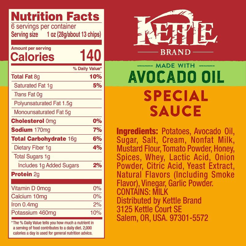 - Includes one (1) 6-ounce bag of Kettle Brand Made with Avocado Oil Special Sauce Chips