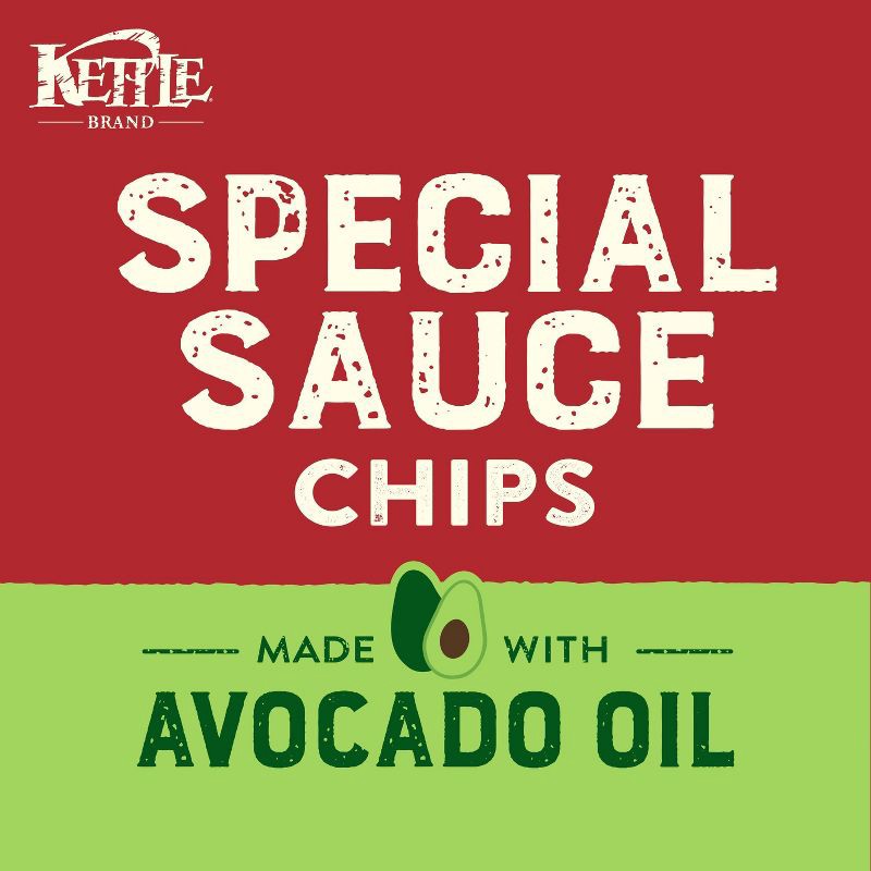 Open a bag of Kettle Brand Made with Avocado Oil Special Sauce Chips and get a burst of flavor in every bite. A unique blend of ingredients and spices create a Special Sauce flavor that's hard to desc…