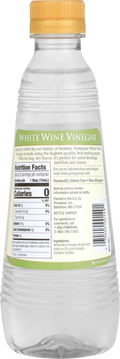 Quality since 1906. Farmer owned. Expertly crafted by our family of farmers, Pompeian White Wine Vinegar is made using the highest-quality, best-tasting grapes. With its crisp, dry flavor, it''s perfe…
