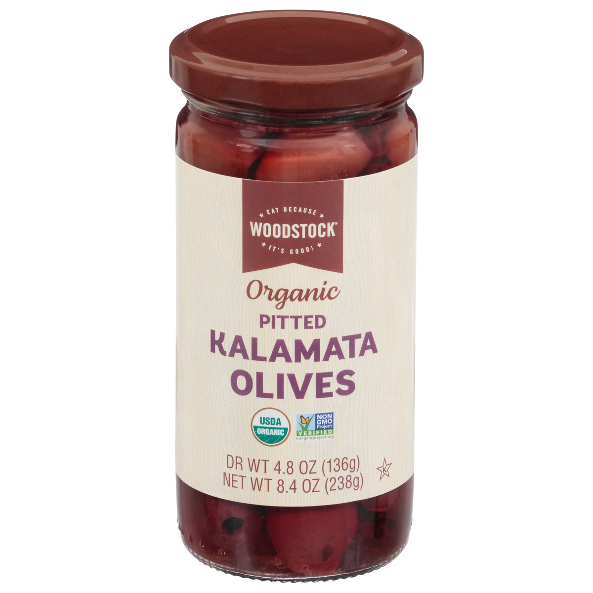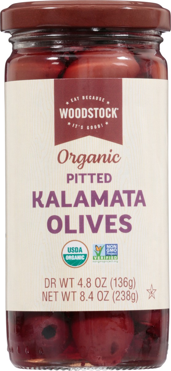 Organic Pitted Kalamata Olives from centuries old family farms in Greece. They are tree-ripened to a deep purple-black color and marinated in red wine vinegary for full flavor. Perfect for salads, pas…