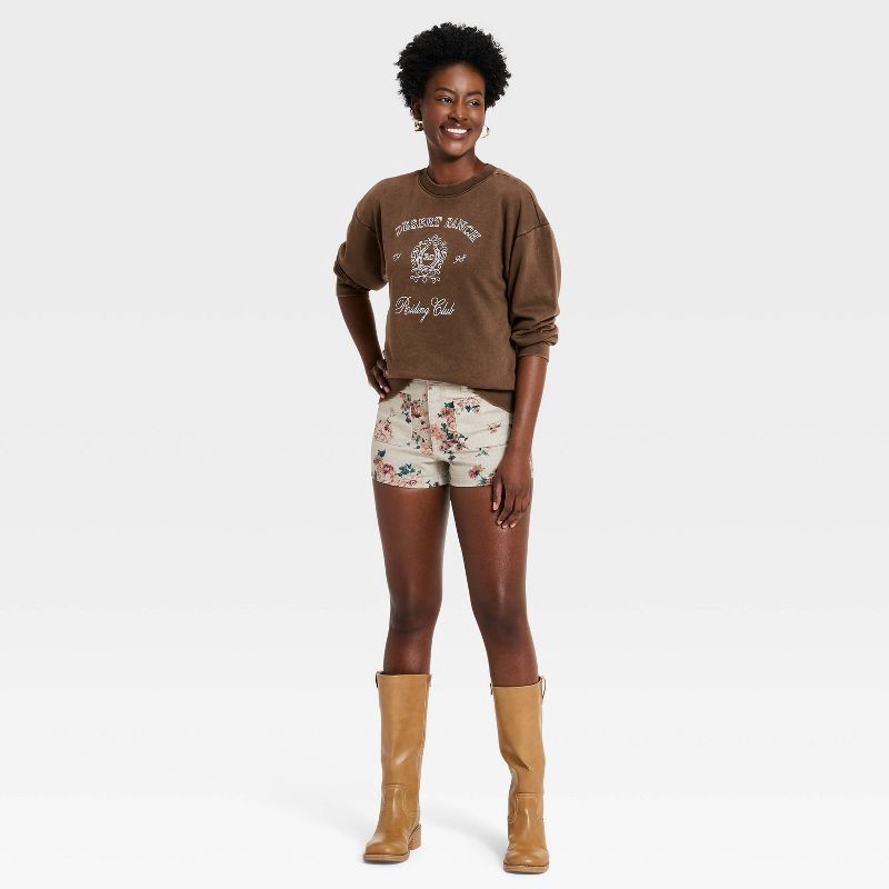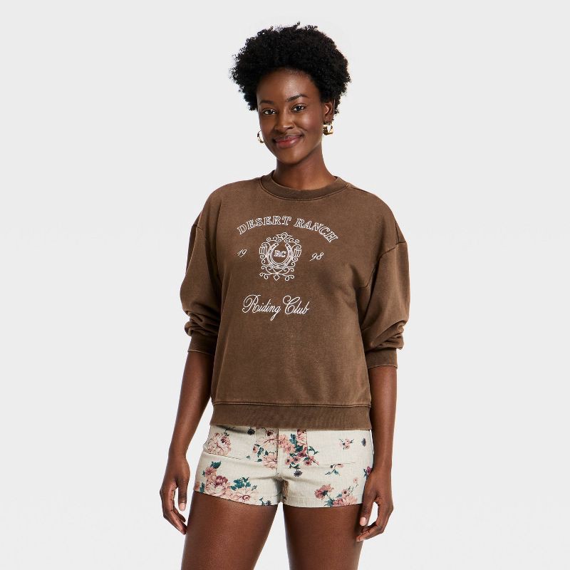 Women's Western Graphic Pullover Sweatshirt - Universal Thread™ Brown XS