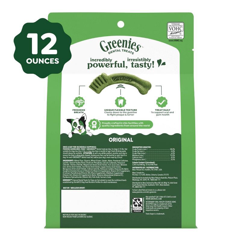 - 12 oz. Pack: Contains one (1) 12 oz. pack of Greenies Adult Dental Dog Treats Teenie Size, Original Flavor, 43 Count.