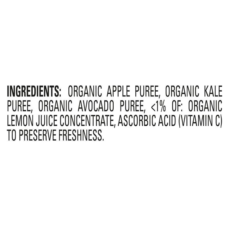ORGANIC APPLE PUREE, ORGANIC KALE PUREE, ORGANIC AVOCADO PUREE, <1% OF: ORGANIC LEMON JUICE CONCENTRATE, ASCORBIC ACID (VITAMIN C) TO PRESERVE FRESHNESS.