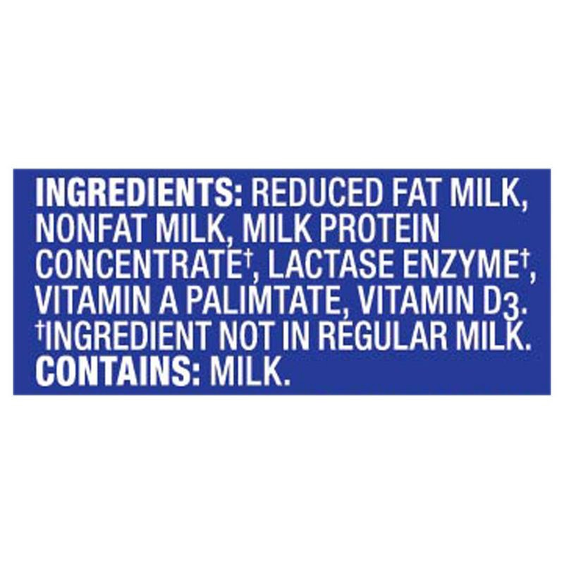 REDUCED FAT MILK, NONFAT MILK, MILK PROTEIN CONCENTRATE , LACTASE ENZYME , VITAMIN A PALIMTATE, VITAMIN D3. INGREDIENT NOT IN REGULAR MILK.