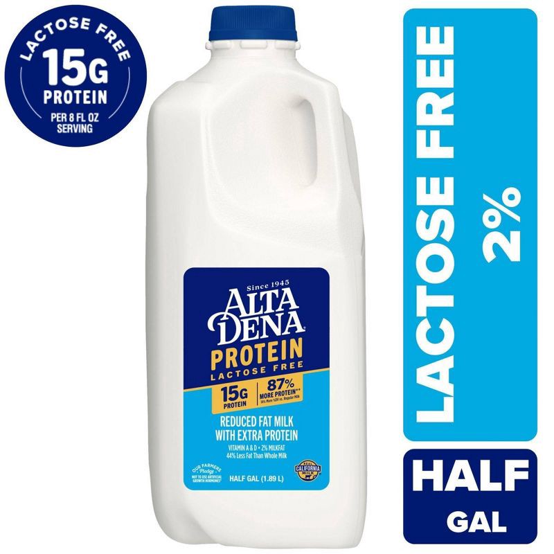 Alta Dena Extra Protein Lactose Free 2% Reduced Fat Milk delivers 15 grams of high-quality dairy protein in every serving of fresh, smooth, protein-rich 2% milk. Sourced from real Southern California …