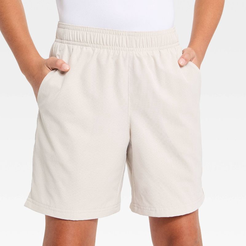 Boys' Mid Rise Textured Grid Woven Shorts - All In Motion™ Beige L
