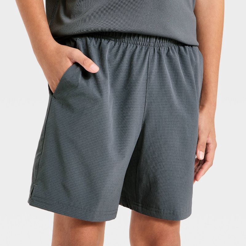 Boys' Textured Grid Woven Shorts - All In Motion™ Dark Gray XL