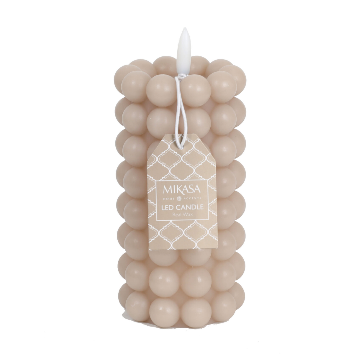 Safely add a soft glow and warm ambience to your home with this Gray Bubble LED Wax Pillar Candle from Mikasa. It is made of real wax with a flickering LED flame, offering the beauty and elegance of a…