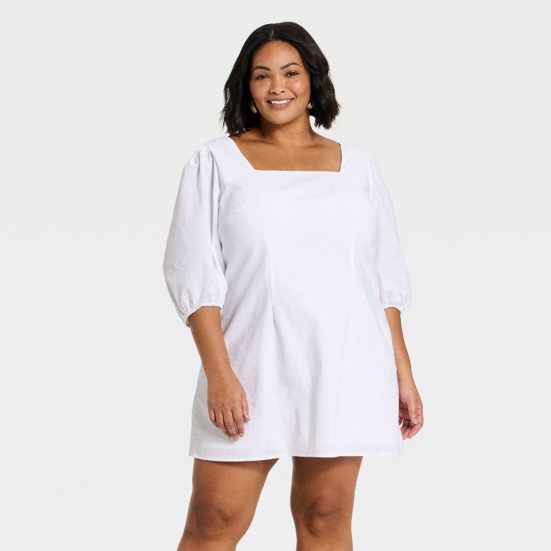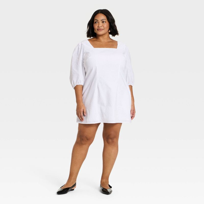 Make a stylish statement wherever you go in this Linen Mini Slip Dress from A New Day™. Crafted from cotton-linen blend canvas fabric with cotton lining for comfortable wear, this elbow-sleeve slip dr…