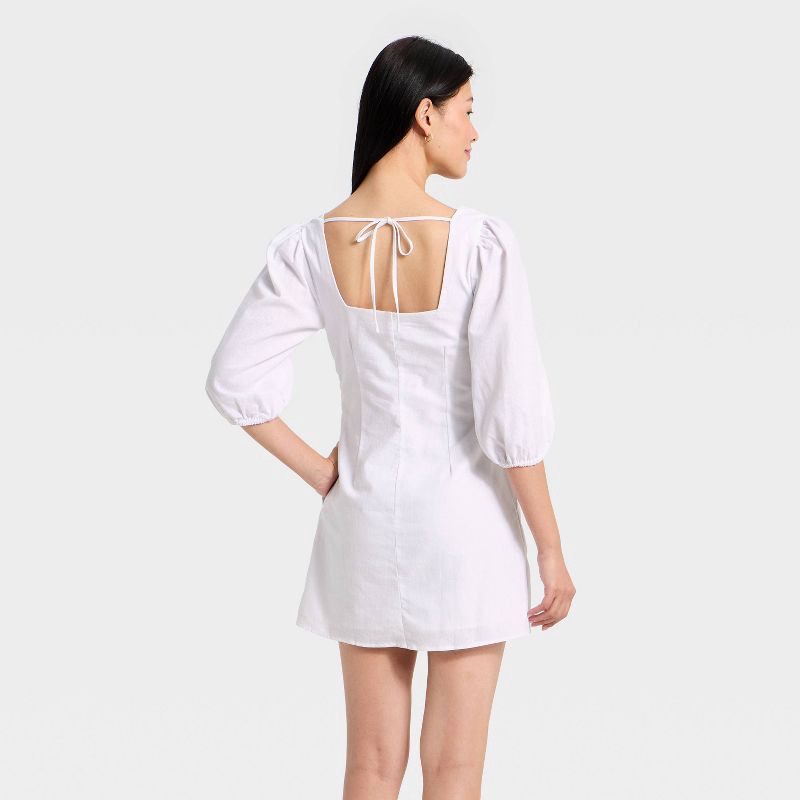 Make a stylish statement wherever you go in this Linen Mini Slip Dress from A New Day™. Crafted from cotton-linen blend canvas fabric with cotton lining for comfortable wear, this elbow-sleeve slip dr…