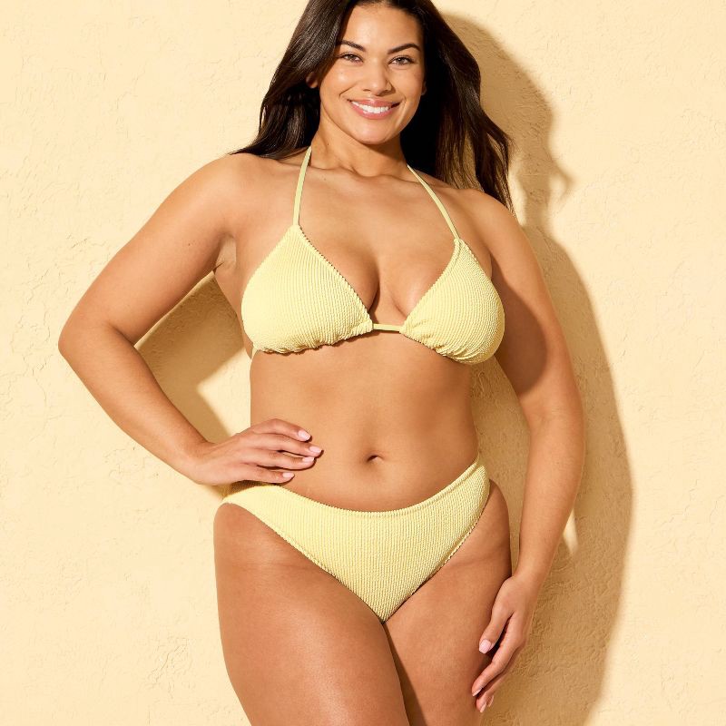 Women's Pucker Mid-Rise High Leg Cheeky Bikini Bottom - Shade & Shore™ Yellow S