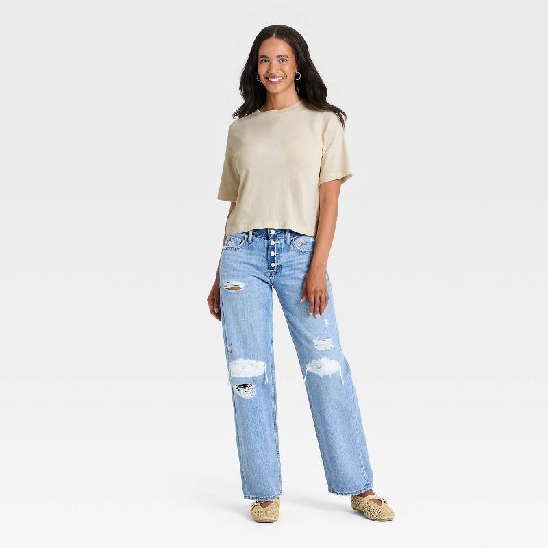 Start your day in effortless casual style with this Short-Sleeve Vintage T-Shirt from Universal Thread™. Made of 100% cotton, this t-shirt is relaxed, and slightly boxy with a vintage feel. It's fashi…