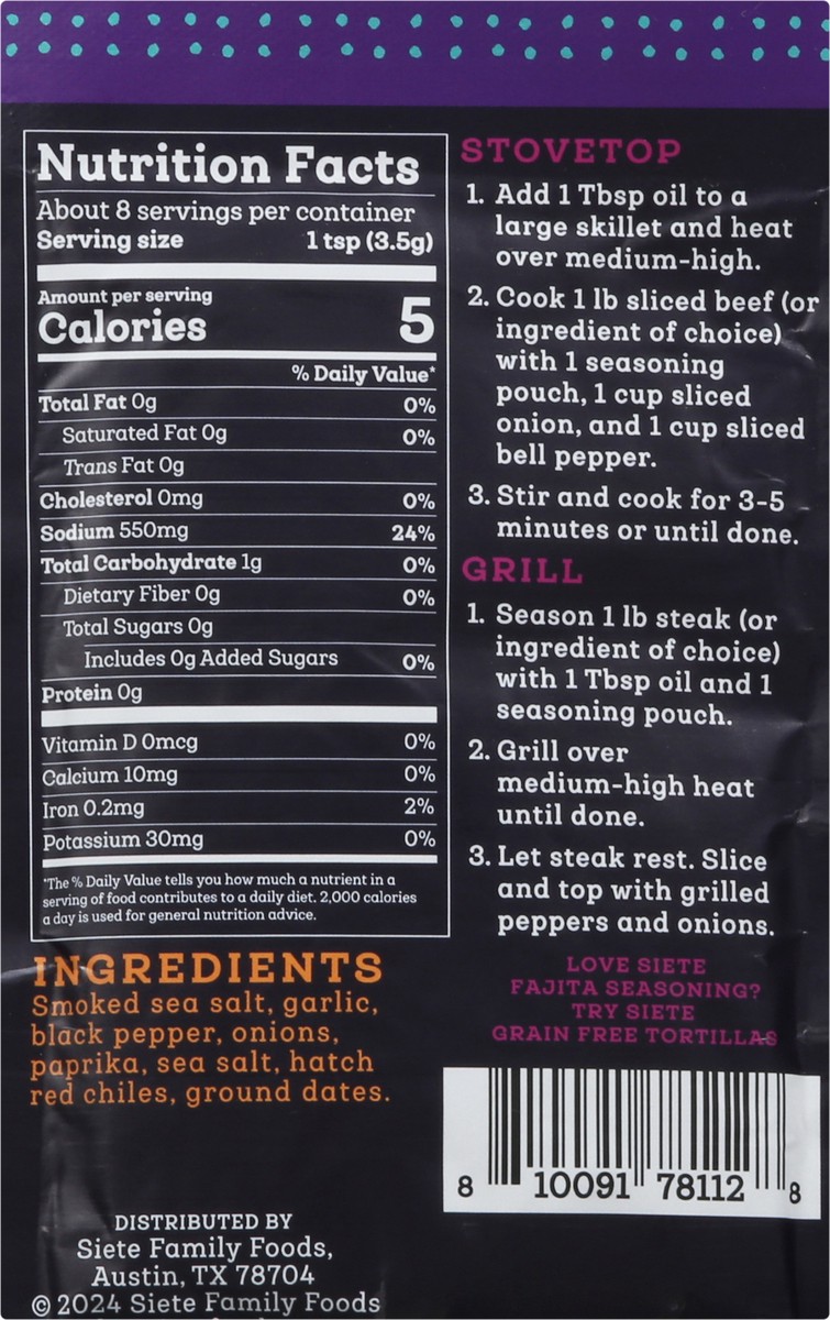 Certified gluten free. gfco.org. Non-GMO Project verified. nongmoproject.org. Also great for veggies, shrimp & soup. Whole 30 Approved. hola(at)sietefoods.com. Love Siete Fajata Seasoning? Try Siete G…