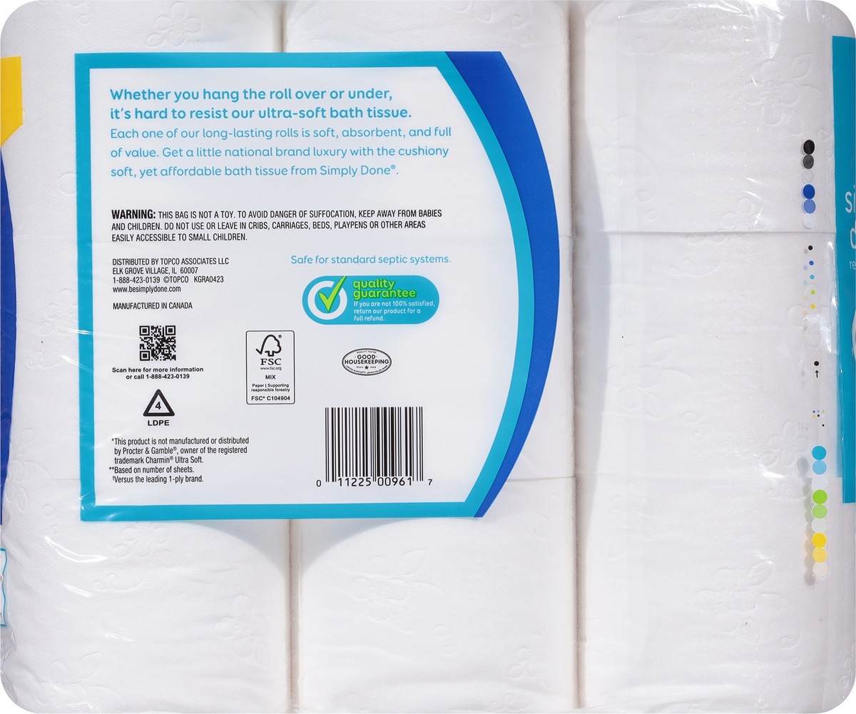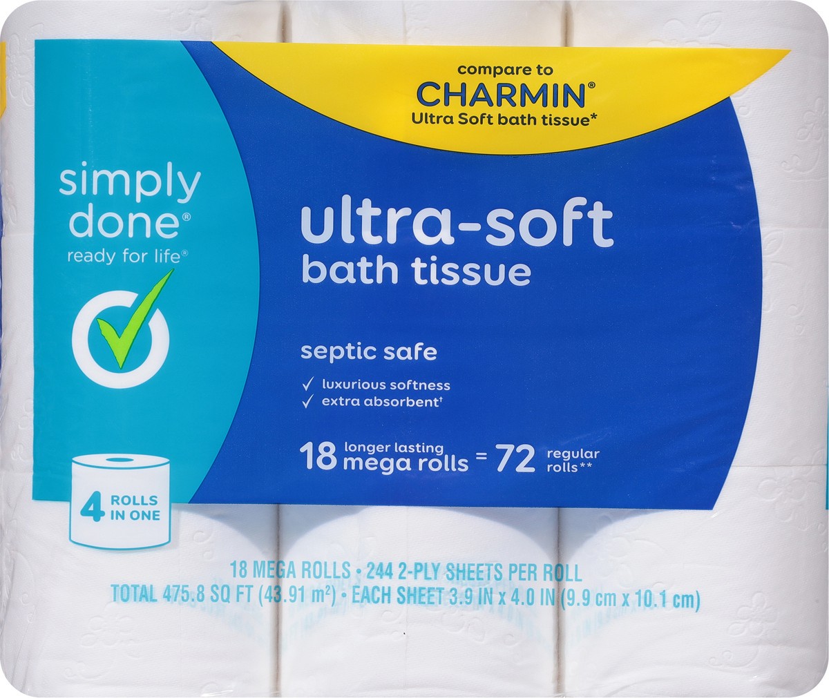 Simply Done 2-Ply Ultra-Soft Bath Tissue 18 Mega Rolls